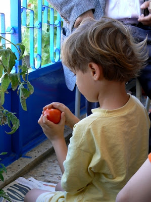 Een dik uur later waren we aan het wandelen, het is heerlijk voorjaarsweer en overal is het groen. Met groen bedoel ik de groenstroken die we overal hebben ontdekt. Gelukkig zijn er veel bij onze wijk. Een van onze favoriete plekken is een breed pad op een heuvel boven een snelweg. Onder je razen de auto's voorbij. Maar langs het pad is het allemaal bloemen. We hebben in het gras gelegen, vlinders achternagezeten. Veel verschilllende bloemen bekeken, het verschil gevoeld tussen pluizig zacht gras en gras zo hard en scherp dat je je vingers er aan kunt snijden. We hebben een lieveheersbeestje gered van een pad waar het elk moment vertrapt kon worden door mensenvoeten, we voelden ons helden toen weer door de lucht vloog. Graszaad geplukt en over elkaar uitgestrooid en paardebloempluis geblazen. En ik ontdekte zelfs een forsythia in het wild, de struik die onze tuin stond toen ik een kind was. Weer heimwee. Weer gepraat over Ons Dorp, over de tuin, de grote boom waar ik graag onder zat. Het was een heerlijke middag. In het groen. In Istanbul, een stad met zo'n 15 miljoen inwoners. Als we dan niet naar Ons Dorp kunnen dan moeten we Ons Dorp maar naar ons toe halen. Met genieten van de groenstroken en tomaten kweken op het balkon.