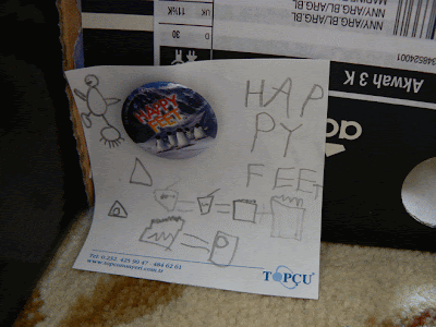 E is weer thuis. De eerste dag is een ellende. De kinderen zijn door het dolle heen en weten niet hoe ze dit moeten uiten. E en ik worden tot het uiterste getest. Na twee dagen is het of is hij nooit weggeweest en alles is weer normaal. Hij was ditmaal net op tijd om een klein wonder mee te maken: Timucin leest. Het lukt hem ineens om van letters naar woorden te gaan. Daarom was hij zo prikkelbaar, er zat iets geweldigs aan te komen! Sinds en maand of twee is hij druk aan het tekenen en letters aan het schrijven. Steeds werd ik gevraagd om woorden te spellen die hij dan zorgvuldig opschreef. En sinds een paar dagen schreef hij sommige woorden zelf, maar het lukte hem maar niet om een woord te lezen. Maar gisteravond had hij het door. Ineens kreeg hij in de gaten dat hij de letters aan elkaar kon plakken. En letter voor letter kwam het hele woord. Jongens wat een ontdekking, wat is hij blij.