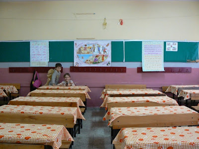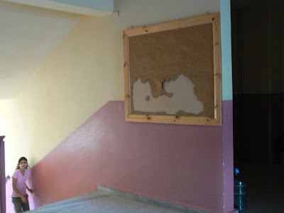Ondertussen werd ik ook nog door de juf van Timucin gevraagd om bij te springen als klassemoeder in de klas van 44 leerlingen (dit was in eerste instantie 56 dus is 44 al een verademing). Hier heb ik niet meteen ja op gezegd, want ze wilde iemand voor 5 dagen per week de hele dag en dat werd me teveel. Ik heb aangeboden om bij te springen wanneer nodig. En dan wilde men me nog in de ouderraad maar omdat dat ook 5 dagen per week was heb ik dat ook afgeslagen, wederom help ik als het nodig is, maar wel heb ik aangeboden om geld en materiaal in te zamelen voor de school. Zoals op de foto's te zien is heeft de school nogal het een en ander nodig. Omdat het school budget het niet toelaat worden dingen als gordijnen, kasten en soms computer klassikaal gekocht. De leerkrachten stellen hun prioriteiten en de ouders moeten dat dan betalen. Zo zijn de tafelkleedjes bv door onszelf betaald, dit om de haveloze staat van de klas wat op te vroljken. In sommige klassen zitten ouders die een tv geven, of een computer of kasten. Hierdoor zijn er dus ook verschillen tussen de klassen onderling.